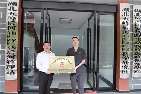 (9月9日,五峰法院院長(zhǎng)蔣正(右)和后河國(guó)家級(jí)自然保護(hù)區(qū)管理局局長(zhǎng)毛業(yè)勇共同為五峰縣首個(gè)生態(tài)環(huán)境司法保護(hù)基地揭牌。)