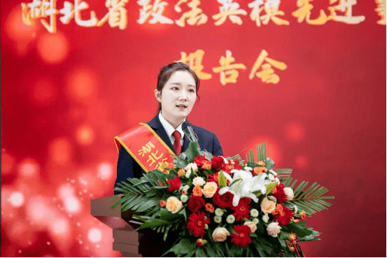被社區居民稱為“沈當家”的武漢市公安局江岸分局百步亭派出所三級高級警長沈勝文,驅車近6小時逆行返漢抗疫的武漢市江岸區檢察院檢察官助理王藝博,時刻保持沖鋒總說“讓我先上”的黃石市公安局特警支隊副支隊長趙兵,二十年如一日化解大量矛盾糾紛的咸寧市通城縣法律援助中心負責人續輝,致力于公安科技創新的省公安廳“情指勤輿”一體化專班成員、荊門市公安局指揮中心副主任鮑丹,將青春奉獻給家鄉法治建設的恩施州宣恩縣人民法院立案庭庭長陳升霄,扎根監獄基層30余年的省沙洋漢津監獄工會副主席、四級高級警長沈新強等英模代表一一登臺,用親身經歷和真摯語言,從不同角度、不同側面,生動講述政法英模忠誠擔當、無私奉獻的感人事跡。荊州市沙市區人民法院法官陳曉黎講述該院刑事審判庭原庭長楊軍堅守刑事審判一線,用生命書寫法治初心的事跡;省檢察院檢察官趙春蕾深情講述省檢察院第八檢察部原主任王朝陽深耕公益訴訟檢察工作、竭力守護公共利益的事跡。