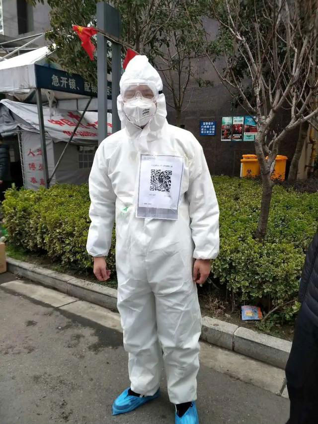 要說工作強度最大、最危險的崗位當屬張志浩所在的配送組,小伙子們每天穿著悶熱的防護服,跑上跑下。上午,冒著感染的風險入戶排查,為每位居民監測體溫,將每戶生活垃圾清運下樓。下午,日均運送600余份物資,50斤的面粉、20斤的活魚,小伙子們一趟趟跑、一袋袋扛,硬是在2個小時內配送到位。他們還別出心裁,把二維碼貼在胸前,實現訂購物資“無接觸收付款”。