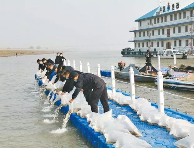2020年11月30日,硚口區(qū)人民法院、人民檢察院、水上公安等執(zhí)法人員代3名違禁捕魚的被告人,將73.76公斤成魚、13.83萬尾魚苗放還長江。