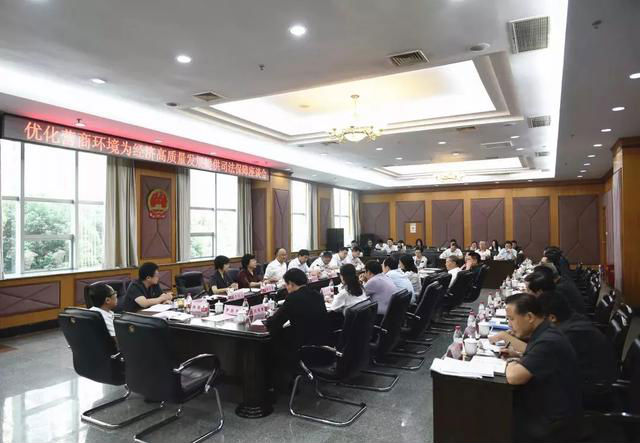 省法院召開優化營商環境為經濟高質量發展提供司法保障座談會,省法院黨組書記、院長游勸榮與8位人大代表、政協委員、民營企業家座談,聽取他們對人民法院發揮審判職能服務民營經濟發展的意見和建議。