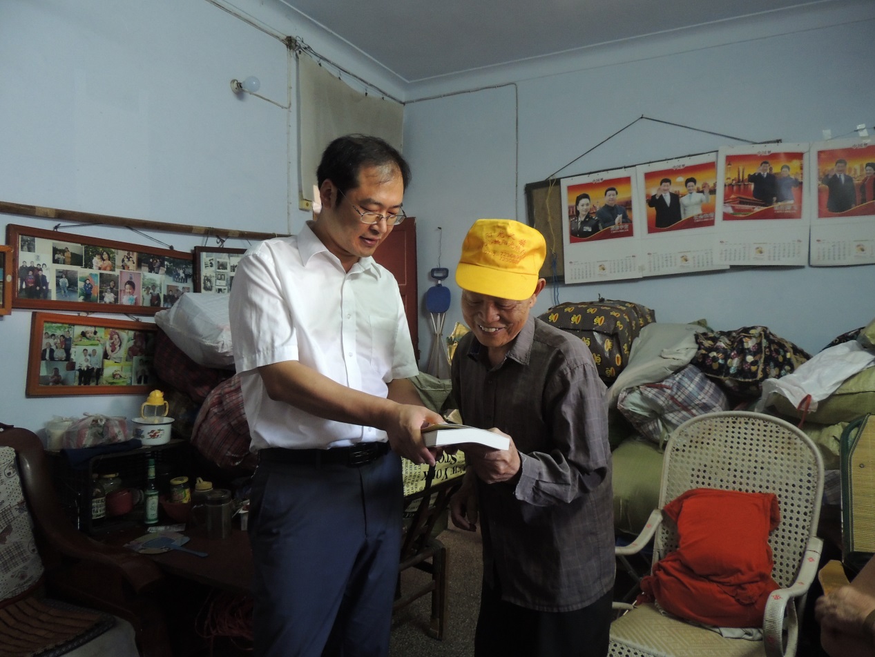 9月2日,谷城縣人民法院黨組書記、院長詹愛軍帶領(lǐng)兩學一做專班成員代表法院黨組走訪了老黨員和生病住院的黨員,為他們送去“兩學一做”相關(guān)學習資料和慰問金等,讓“兩學一做”學習教育活動在年老體弱的黨員中不留空白。 84歲的陳世炎是谷城法院退休的老院長,是一名政治覺悟極高、黨性原則非常強的老黨員,他雖然退休多年,但從未停止過對黨的政治理論、政治紀律和政治規(guī)矩的學習,經(jīng)常通過電視、報紙等媒體了解國家的時事政治和中央的決策部署。詹院長來到陳老院長家中,與他進行了親切交談,老院長用深情而樸實的語言談了自已一生在黨、愛黨的情懷,一席話讓在座的同志明白了什么是“真正的黨員”標準,什么是“不忘初心”。之后,詹院長又深入細致的詢問了老院長的生活及身體狀況,并囑咐老院長保重身體,安享晚年,并請他一如繼往地關(guān)心法院的發(fā)展,及時向院黨組提出寶貴的意見和建議。 隨后,詹院長又前往谷城縣中醫(yī)院把關(guān)于“兩學一做”的學習資料送到了患病住院的黨員干警李雁林的手中。同時,為他送去了黨組織的問候與祝福。詹院長詢問了他的病情和生活情況,鼓勵他樹立信心,不忘共產(chǎn)黨員的初心,克服困難,勇敢與病魔作斗爭,早日康復回到工作崗位。李雁林和家人對黨組織對他長期以來的關(guān)心表示衷心感謝。在收到學習資料后,李雁林激動的表示自己要快點好起來,積極參與到“兩學一做”學習教育活動中來。 走訪慰問老黨員和生病住院的黨員是谷城法院“兩學一做”的具體實踐,是弘揚黨的優(yōu)良傳統(tǒng)作風、進一步增強基層黨組織的凝聚力、號召力和向心力的具體體現(xiàn)。谷城法院將繼續(xù)把走訪慰問老黨員作為“兩學一做”學習教育的一項重要內(nèi)容,使“兩學一做”學習教育活動覆蓋到每一名黨員。