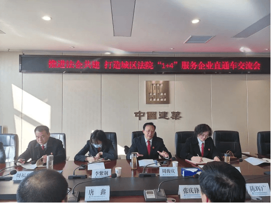 中建三局基建投公司華中分公司、中國化學工程第六建設有限公司負責人對法院開展的營商環境“五個直通”工作措施表示高度贊揚,并提出將以此為藍本制定公司配套措施,進一步強化企業法治建設,共創良好營商環境。