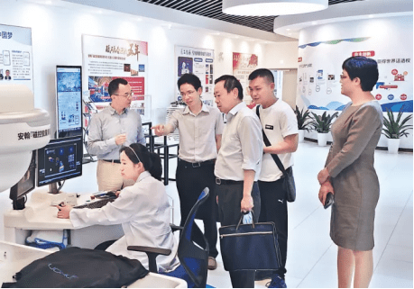 2021年5月,武漢知識產(chǎn)權(quán)審判庭法官(右二、右三、右四)服務(wù)企業(yè)。