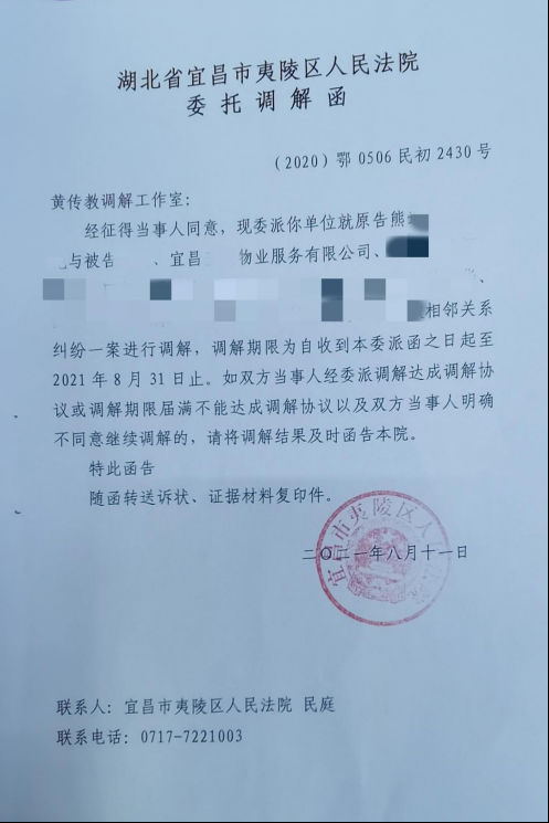 第一次開庭審理過程中,承辦法官充分了解案情后,決定追加熊某樓上業主15人為該案被告。二次開庭前夕,承辦法官考慮到鄰里關系和睦,開庭審理會增加對立情緒,決定將該案委托給曾成功調解過類似案件的“黃傳教調解工作室”進行調解。