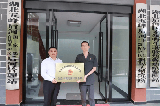 9月9日,宜昌市五峰法院院長蔣正和后河國家級自然保護(hù)區(qū)管理局局長毛業(yè)勇共同為五峰縣首個生態(tài)環(huán)境司法保護(hù)基地揭牌