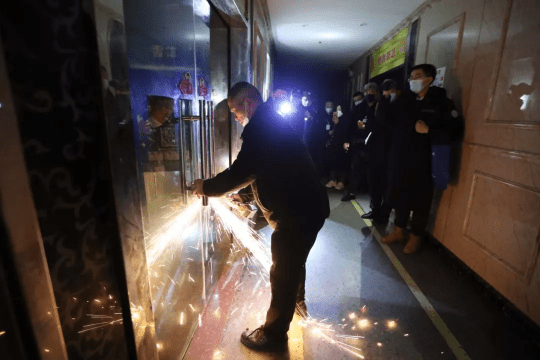 鎖匠破門,幫助干警進(jìn)入房間清騰物品