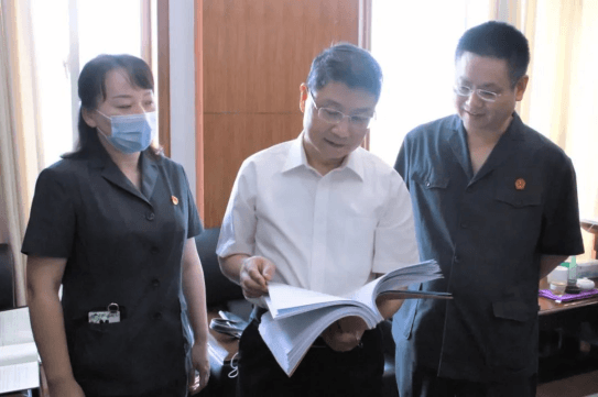 田昌兵副院長一行實地察看了該院教育整頓工作整體氛圍營造情況,認真查閱了該院教育整頓領導小組辦公室和刑一庭黨支部、監察室鑒定室黨支部相關臺賬資料,翻閱了干警學習筆記和心得體會,并主持召開座談會,聽取學習教育環節工作情況匯報。