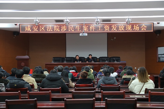 春節前夕,咸寧市咸安區法院舉行涉民生案件工資發放現場會,為到場的60余名申請人發放了共計43萬余元的執行案款,讓大家可以高高興興的回家打年貨、過大年。