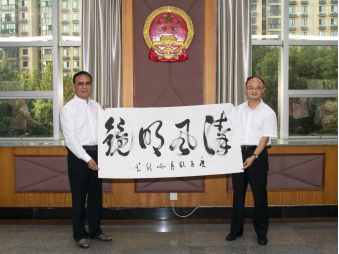 9月18日下午,全國人大憲法和法律委員會副主任委員、中國法學會副會長江必新率領中國行為法學會廉政書畫院書法家一行,向湖北高院捐贈書法作品。湖北高院黨組書記、院長游勸榮出席捐贈儀式。